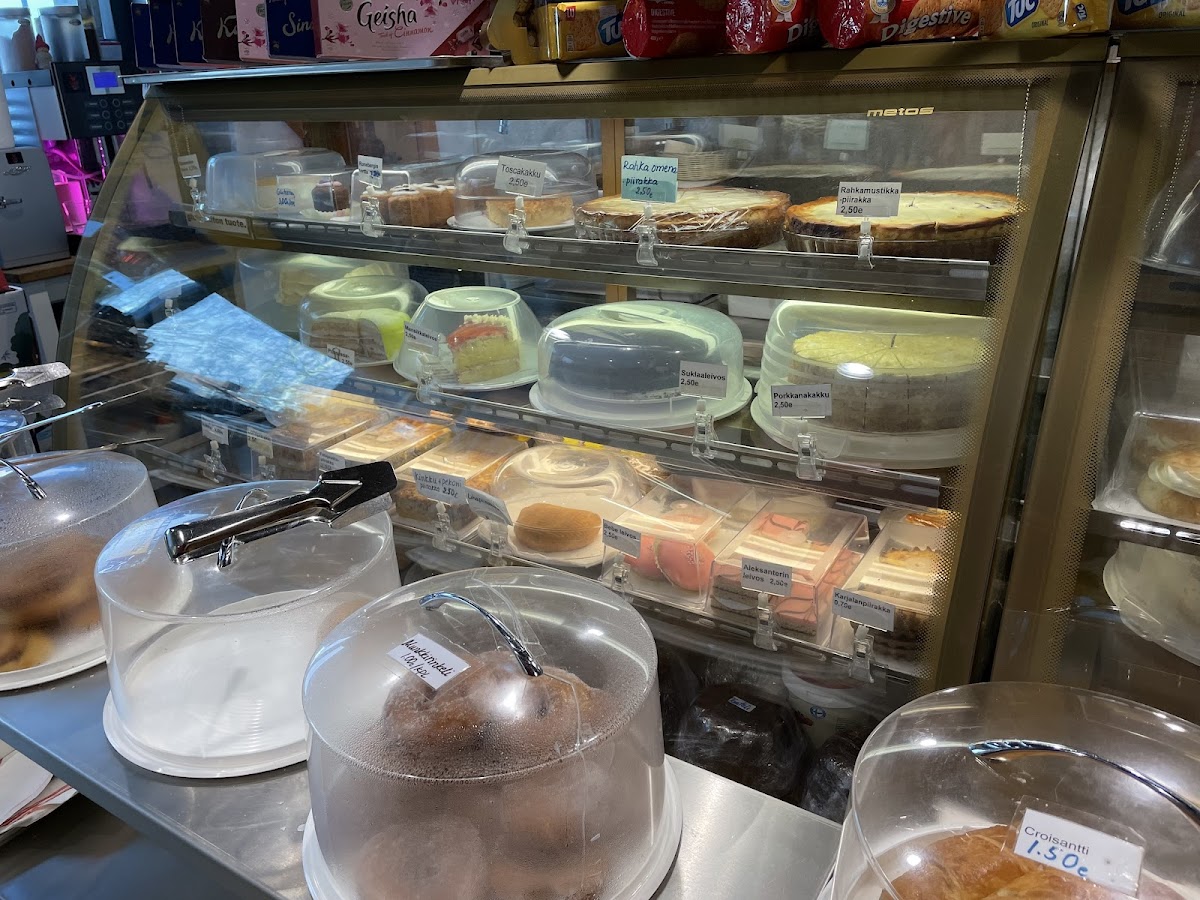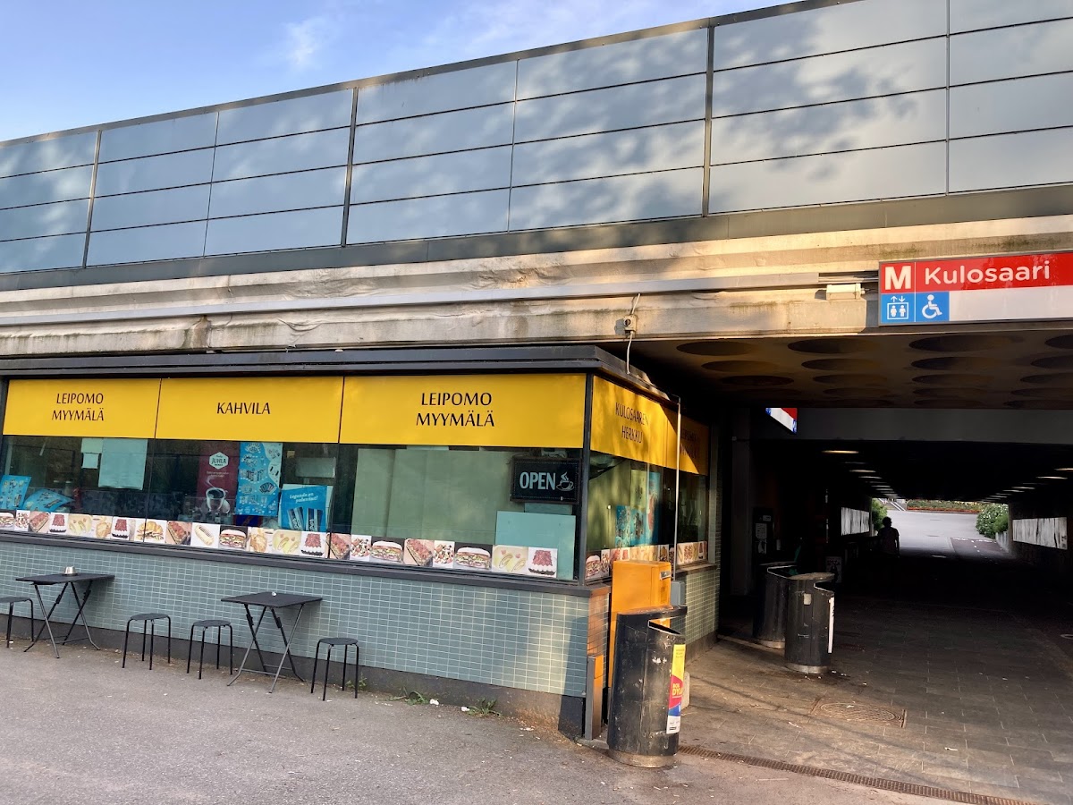 Lovely lil kiosk-cafe near by the kulosaari metro. Slice of cheese cake which could be 7-10 euros in central is here only 2,50e. Other delicacies are cheap too. Ok its a little kiosk and they have only two table's but if you are searching cheap but tasty pastries and cakes this place is worth of visit <3