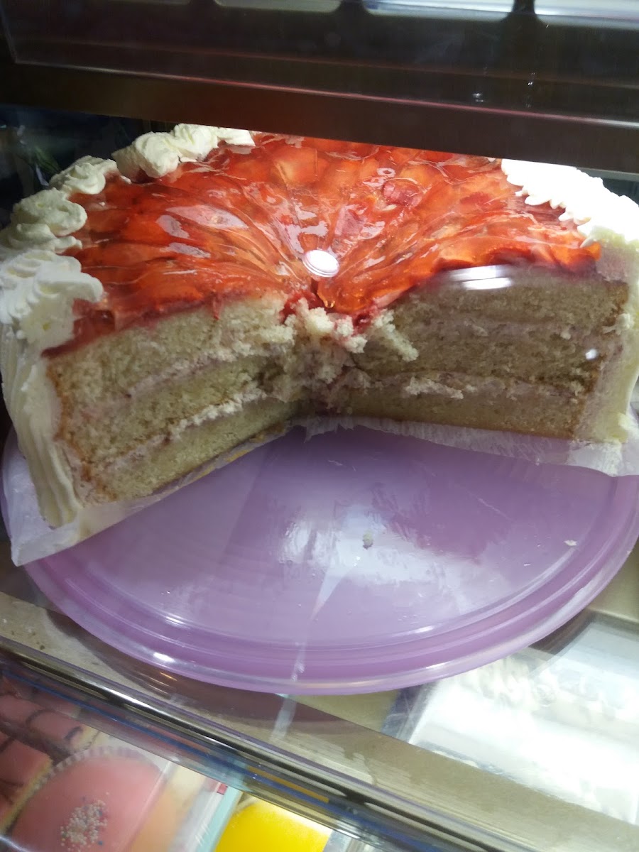 There is always a nice and friendly staff and A wide selection of cakes and sandwiches. Two tables.